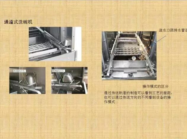籃傳式(通道式):商用洗碗機通過對盛放于籃筐中的餐具進行清洗(籃筐的大小有標準式與非標式兩種),這種洗碗機最大的特點是可以清洗各種樣式,不規則的餐具(最大直徑小于50CM)主要用于酒店,學校和機關單位食堂等